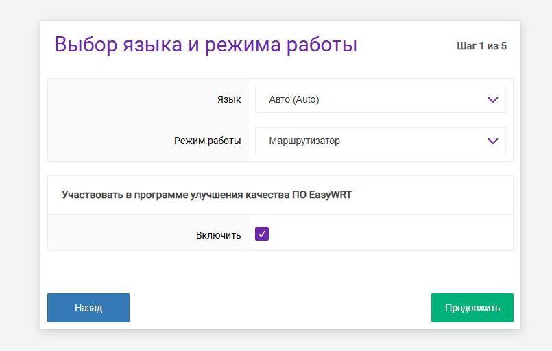 После выполнения входа вам откроется мастер быстрой настройки.