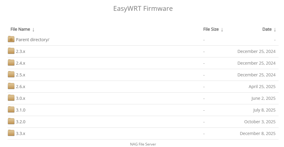 В нашем случае актуальная поддержка роутера фирмой производителем, переходим в каталог «EasyWRT Firmware»