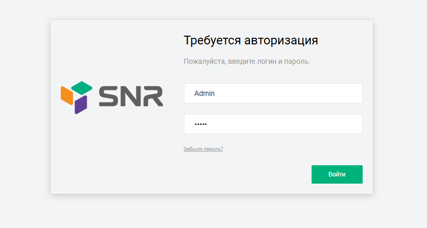 В окне ввода логина и пароля необходимо ввести следующие данные: Логин (Имя пользователя) – Admin, Пароль – Admin. Затем нажмите «Войти».