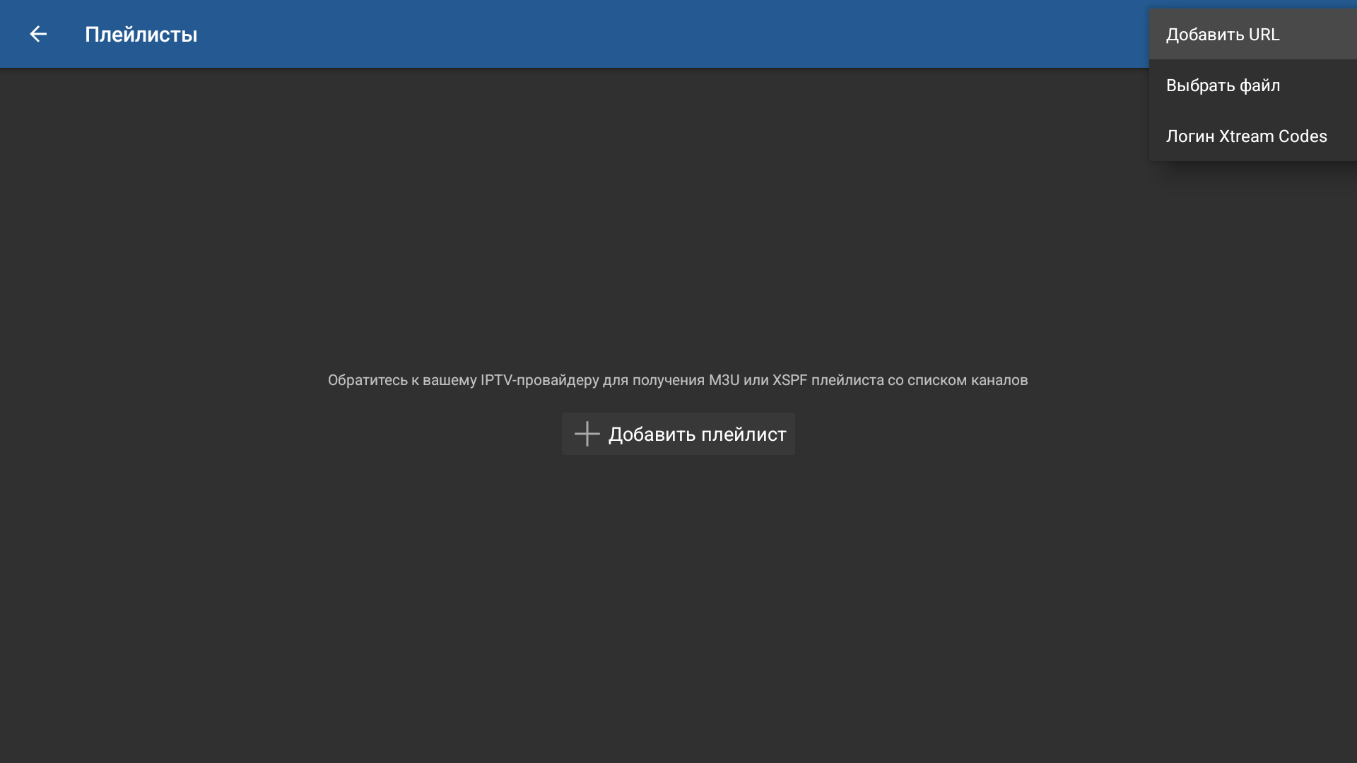 Теперь нам нужно добавить плейлист , добавление возможно 2-мя способами:Добавить URL и Выбрать файл