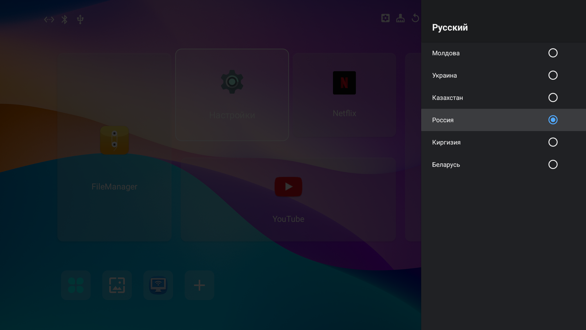 Выберите в списке Русский - Россия, нажмите ОК на пульте: