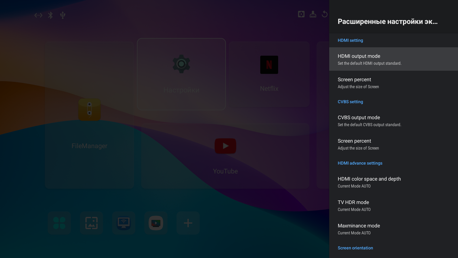 В расширенных настройках экрана выберите пункт HDMI output mode: