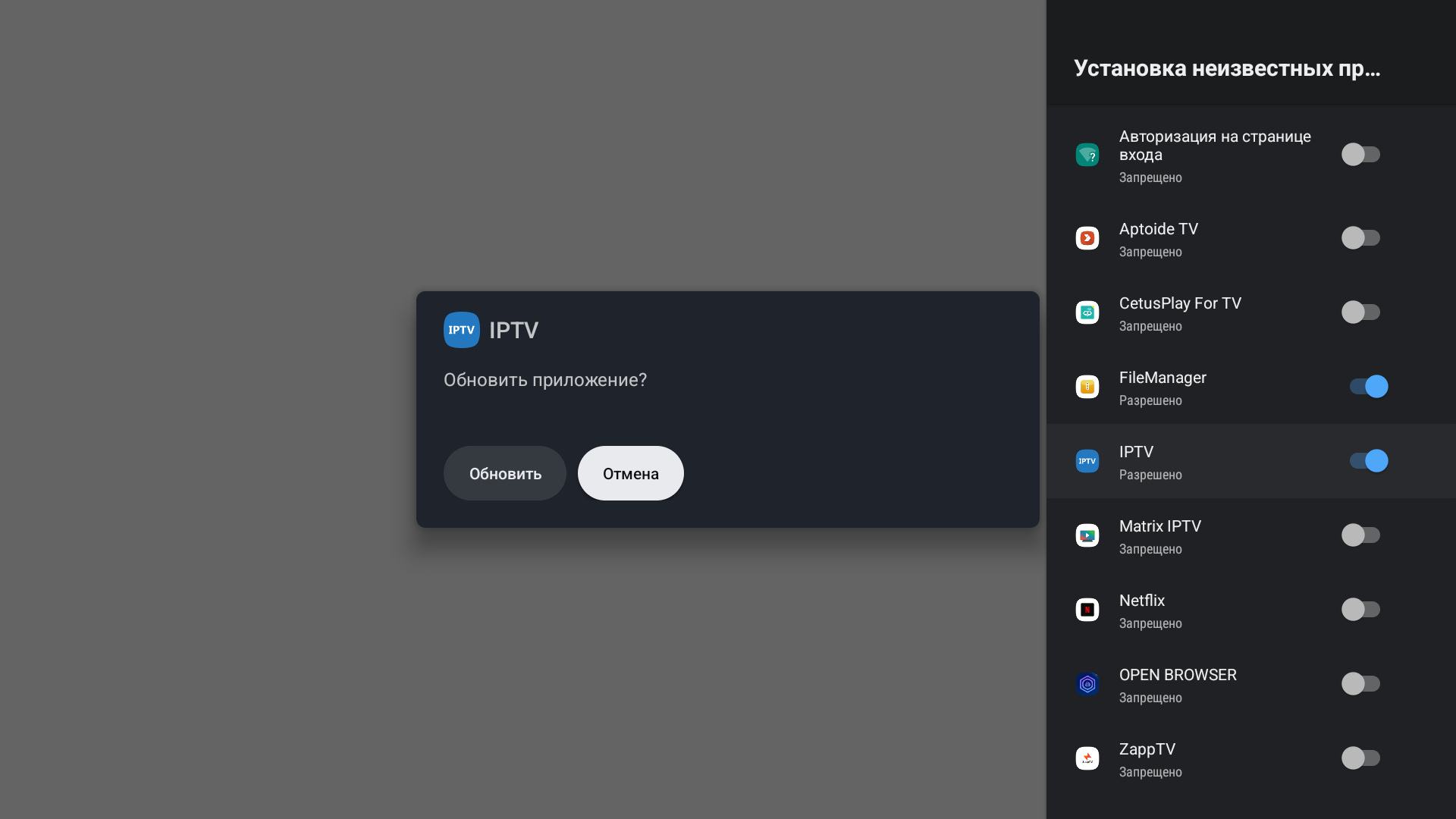 далее у нас становится активна кнопка «Установить» , нажав которую ,приставка установит выбранное приложение и мы увидим