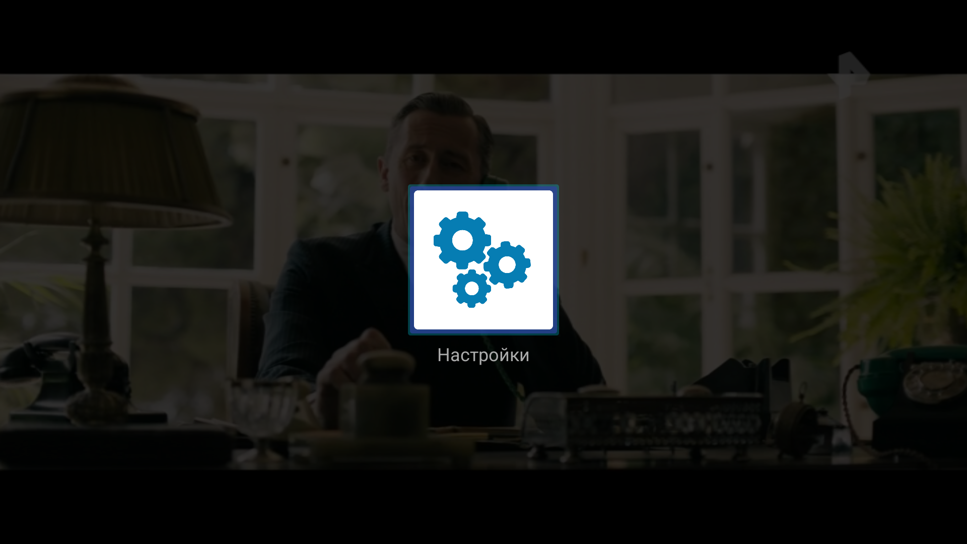 Для доступа в настройки приложения нажмите на пульте кнопку Back (Назад), на экране появится кнопка с изображением шестеренок. Нажмите на пульте стрелку вправо(если рамки вокруг настроек нет) чтобы выбрать этот элемент (вокруг него появится синий контур) и нажмите на пульте ОК: